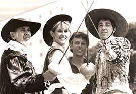 Our first Summer Festival production of Twelfth Night in Pershing Square (1986). L-R: Herman Arbeit (Sir Toby Belch), Dana Stevens (Viola), Ben Donenberg (Producer) and Larry Coven (Sir Andrew Aguecheek).