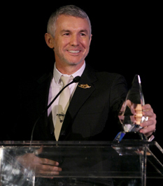 Baz Luhrmann accepts the Crsyal Quill Award.