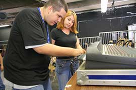 Albert and Maria set up the sound system for the Urban Shakespeare CD release party.